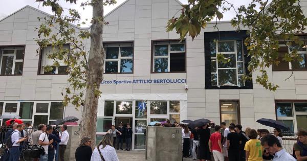 Andrea Massari, presidente della Provincia, poco prima del taglio del nastro della nuova scuola e della nuova palestra per il Liceo Bertolucci (indirizzo sportivo) in piazzale Sicilia. L’investimento complessivo di 3,5 milioni di euro è stato interamente stanziato dalla Provincia. Qui, oltre alla palestra, trovano spazio 9 aule per 25 ragazzi circa ciascuna