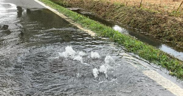 Via Mezza Moletolo. La pioggia ha colmato i canali e le infiltrazioni sotto la strada hanno portato alla formazione di questo fenomeno, con veri e propri fontanazzi che rompono l'asfalto.
