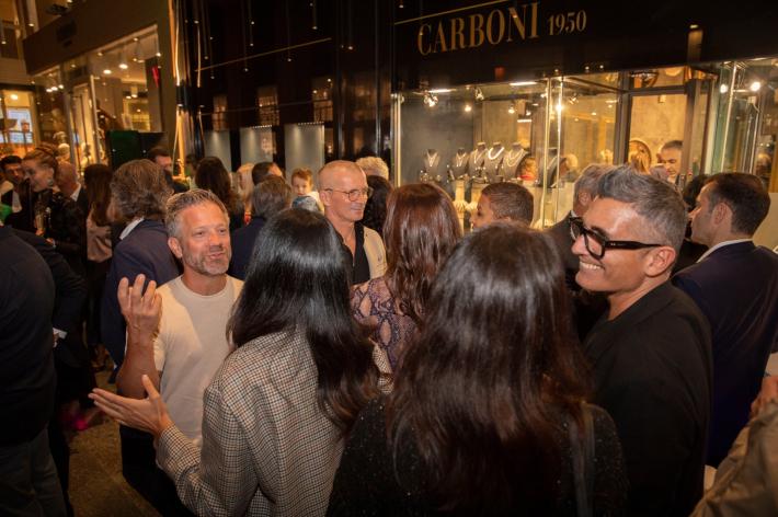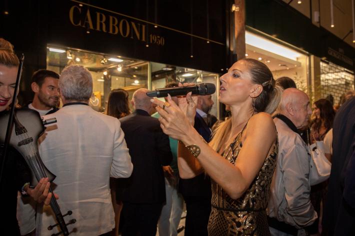 Grande festa per l'inaugurazione del rinnovato store della gioielleria Carboni in via sotto i portici di via Mazzini. La festa con buffet e musica dal vivo si è svolta nello spazio esterno al negozio.