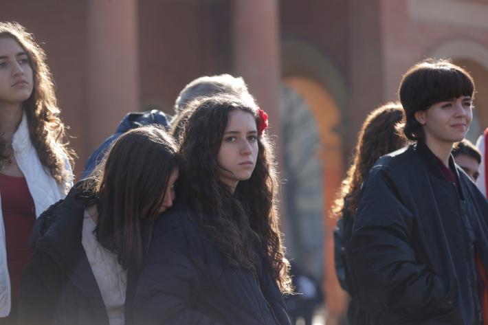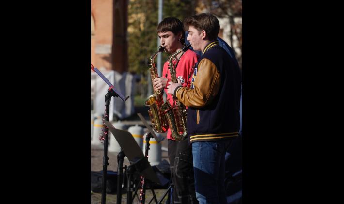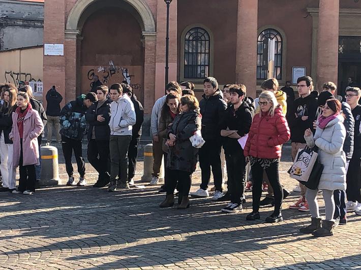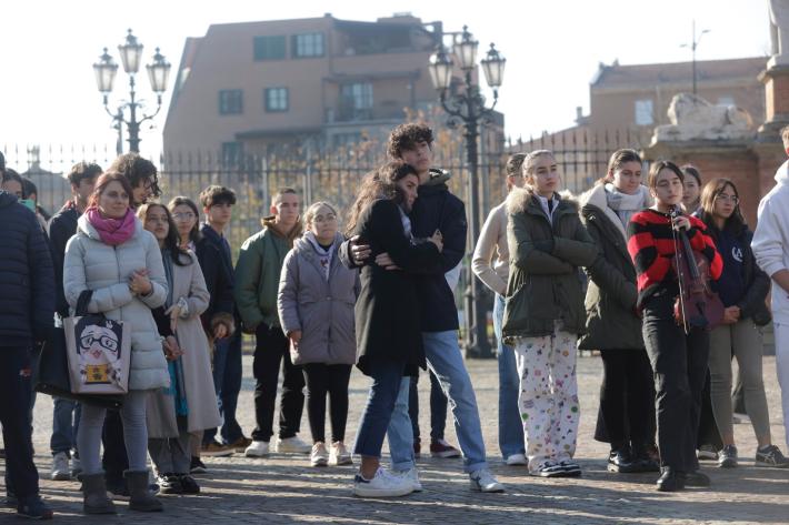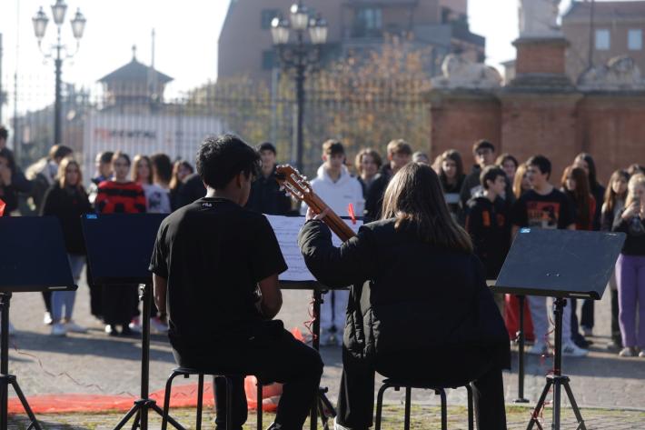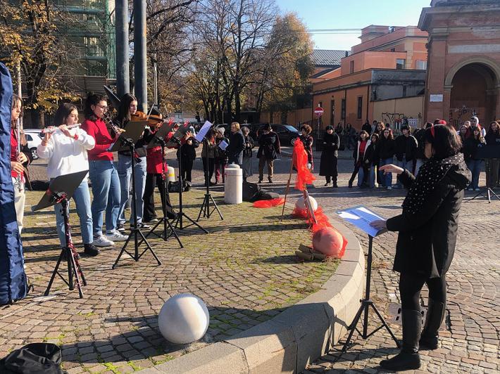 Dalle 11 a mezzogiorno piazzale Barbieri è stato inondato dalla musica e dalla commozione degli studenti del liceo musicale Bertolucci per ricordare Giulia Cecchettin. Tante note per una volontà condivisa: fermare la violenza e i femminicidi.