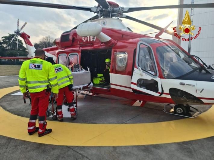 Oggi pomeriggio una squadra dei vigili del fuoco di Parma con una autobotte ha fatto assistenza nella piazzola dell'elisoccorso dell'ospedale Maggiore all'atterraggio e al decollo di Drago 147, elicottero dei vigili del fuoco utilizzato per il trasporto di un piccolo paziente pediatrico - una bimba con lesioni gravi per aver ingerito una batteria - verso l'ospedale Gaslini di Genova con a bordo l'equipe medica dello stesso ospedale.