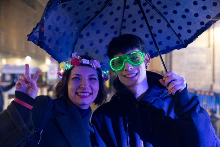 Benvenuto 2024: il nuovo anno salutato in piazza Garibaldi in musica e allegria. La pioggia non ha rovinato la festa. In tantissimi giovani e giovanissimi (sotto gli ombrelli) hanno ascoltato e ballato la musica suonata dai dj James Lavelle e Digitalism.