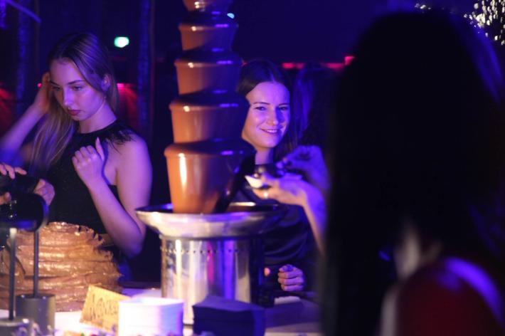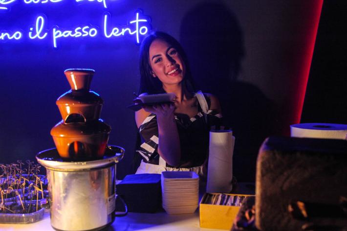 “The Chocolate Factory”: party speciale, ieri sera all’Astrolabio. Lo storico locale di Via Zarotto sta vivendo una nuova vita da un paio d’anni e ha offerto un appuntamento da ricordare a tutti i presenti. Al termine della cena, sold out, durante la quale è stata proposta la doppia opzione tra la cucina tradizionale affidata al ristorante “Fontana” di Calestano (compresa di pizza gourmet) e quella giapponese garantita da “Hanami”, spazio a fontane di cioccolato e frutta fresca per vivere una notte nello stile di Willy Wonka e la fabbrica di cioccolato.