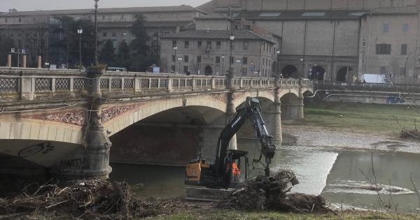 Pulizia del torrente Parma, questa mattina.