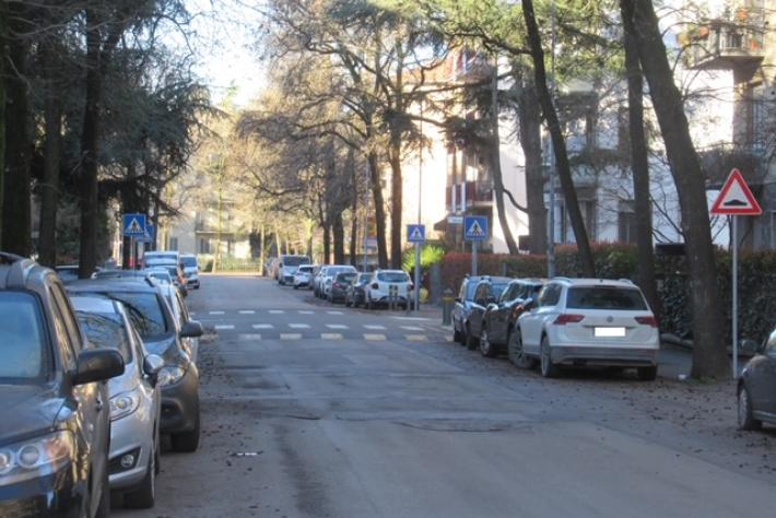A titolo di confronto, a pochi chilometri di distanza c’è anche il limite di velocità «30» nella segnaletica che annuncia la pavimentazione rialzata all’incrocio tra via Giovenale e via Orazio.