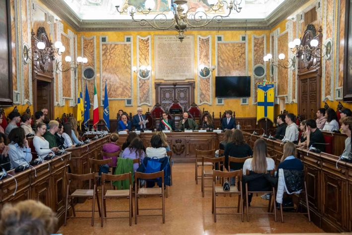 In relazione alla “Giornata dell'Unità nazionale, della Costituzione, dell'inno e della bandiera”, che si celebra il 17 marzo, si è svolta, questa mattina, nella sala del Consiglio Comunale, la cerimonia di consegna della Costituzione agli studenti neo diciottenni di Parma e provincia.