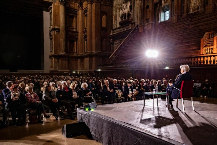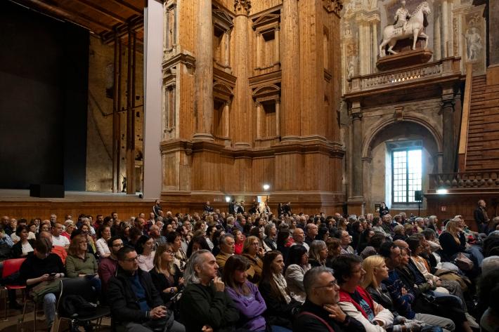 Grandissimo successo di pubblico per l'atto finale della rassegna Caleidoscopio, organizzata dal Comune di Parma. La Lectio sull'Europa di Corrada Augias al Teatro Farnese è stata seguita da una foltissima platea. Per la firma delle copie dell'ultimo libro (un autobiografia) del popolare giornalista si è formata una lunga coda.