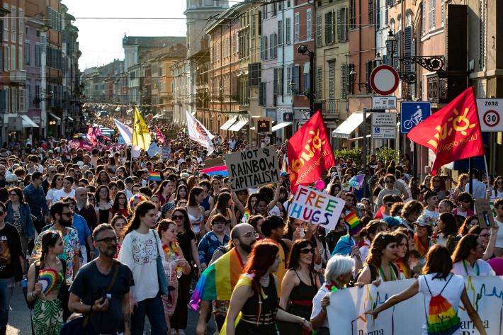 Il Parma Pride nel 2024 è giunto alla sua terza edizione. La manifestazione per l’inclusione e il riconoscimento di pari diritti per le persone Lgbtq+ è stata molto partecipata. Il corteo ha preso avvio nel pomeriggio di oggi da piazzale Santa Croce, ha attraversato il centro, per raggiungere il Parco della Musica all’ex Eridania.