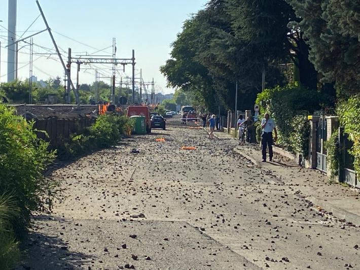 Una trentina di auto, parcheggiate in una strada adiacente alla linea, sono state danneggiate dal pietrisco sollevato dalla carrozza sviata del merci. Anche alcuni finestrini del regionale sono stati colpiti e danneggiati.