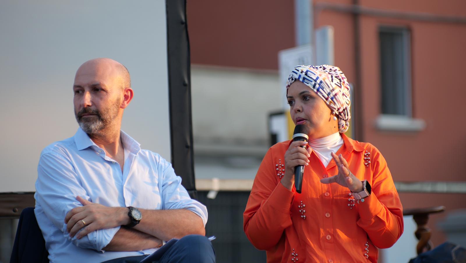 Ad aprire la serata di mercoledì 10 luglio è stata la giornalista Elisa Pederzoli, autrice del libro “Saman. Vita e morte di una ragazza italiana” (Aliberti editore), scritto con il collega Jacopo Della Porta. Entrambi cronisti della Gazzetta di Reggio, hanno riassunto nel volume la vicenda della ragazza pakistana, scomparsa da Novellara nella notte tra il 30 aprile e il 1° maggio 2021. La sua tremenda fine, dovuta alla scelta di opporsi alle costrizioni imposte dalla famiglia, ha avuto un’eco nazionale, ma ha prodotto anche alcuni atti legislativi per rendere più semplice la denuncia da parte di ragazze e ragazzi costretti a vivere in un clima di oppressione e intimidazioni.