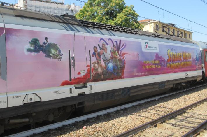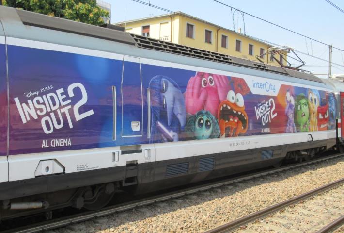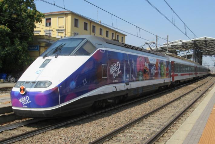 Vanno su e giù per l’Italia e si vedono spesso alla stazione di Parma: a condurre i treni Intercity ci sono anche dei locomotori con la vistosa pubblicità degli ultimi film d’animazione della Walt Disney Company.