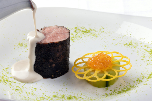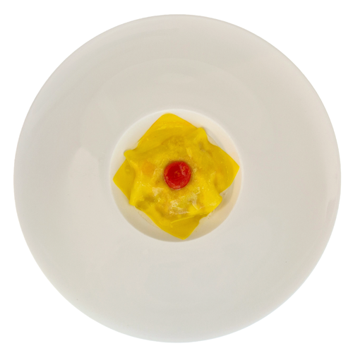 A seguire la creazione dello chef guest Davide Oldani, due stelle Michelin e la stella Verde Michelin per la sostenibilità con il ristorante D’O a Cornaredo (Milano), dal titolo “Sfoglia di pasta, ragù vegetale, pomodoro, anguria e vino passito”.