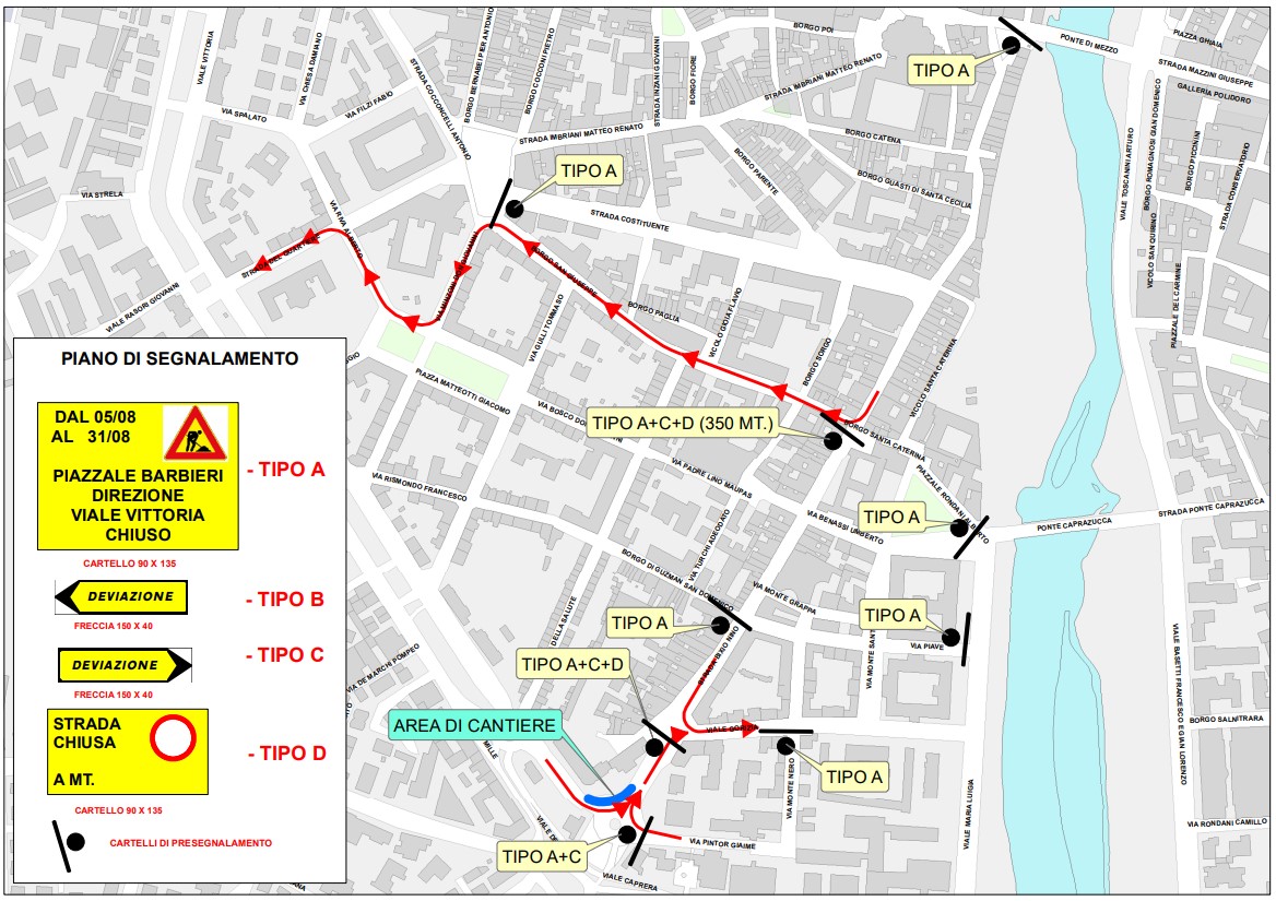 Dal 05 agosto al 31 agosto, nel breve tratto di strada Bixio in prossimità di piazzale Barbieri, area nord-ovest di piazzale Barbieri e breve tratto di viale Vittoria, in prossimità di piazzale Barbieri, sono previsti restringimenti di carreggiata pari ad una corsia di marcia. Prevista anche l’istituzione del divieto di sosta con rimozione forzata amo i lati 0-24h. Istituzione del senso unico direzione ovest a est (direzione viale Vittoria a piazzale Barbieria strada Bixio)