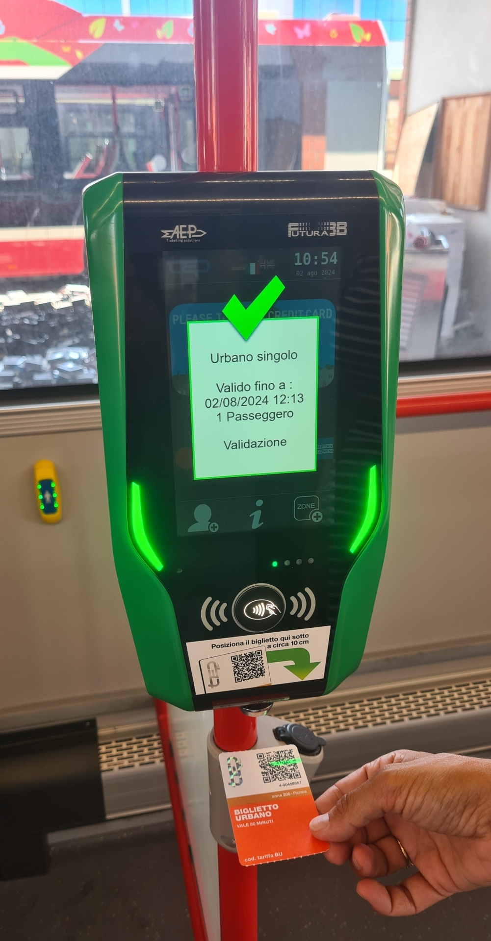 I nuovi titoli permetteranno di sfruttare tutte le funzioni disponibili sui validatori verdi, attualmente in uso per il pagare la corsa a bordo con carta di credito e abilitati anche alla validazione dei biglietti. Nella parte inferiore di questi dispositivi, infatti, è già attivo un lettore di QR code da utilizzare per la scansione dei codici sui nuovi tagliandi. Il sistema sarà adottato in modo analogo in tutte le città della regione Emilia-Romagna.