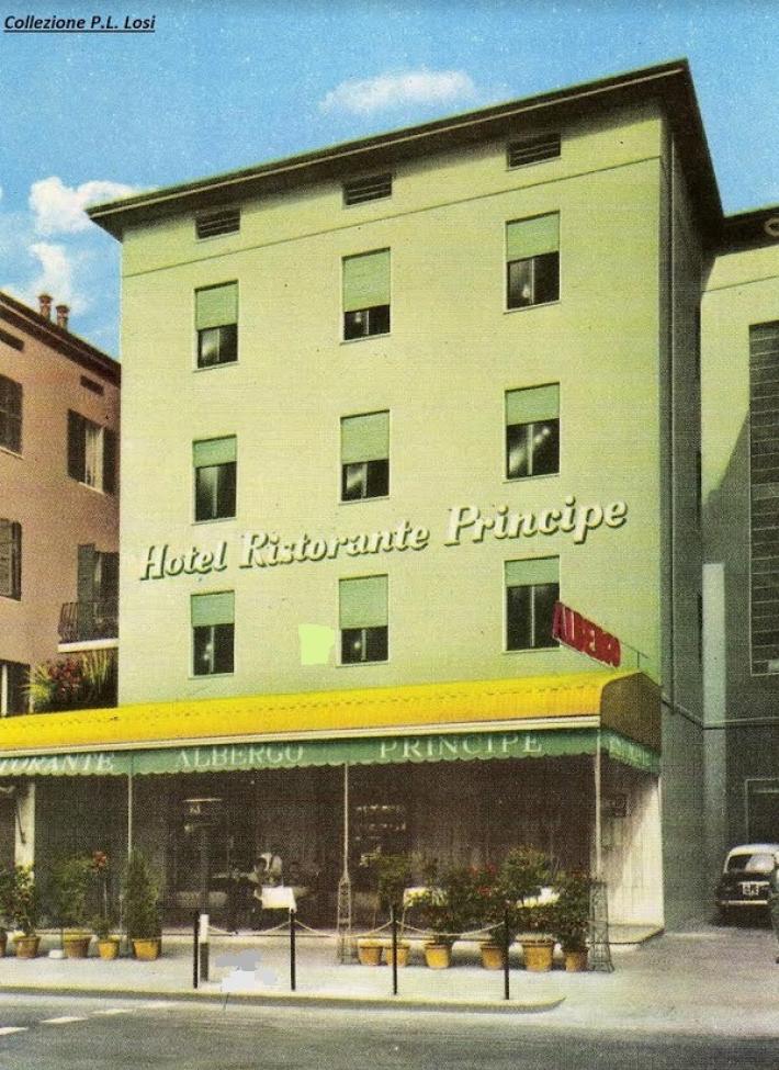 A ricordare l’hotel Principe c’è anche una cartolina del 1970 (collezione Pier Luigi Losi). C’è da aggiungere che da qualche mese il palo che sostiene il cartello stradale è inclinato, ma nessuno si è curato di raddrizzarlo