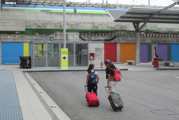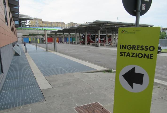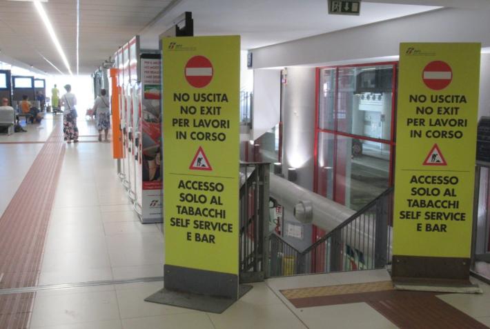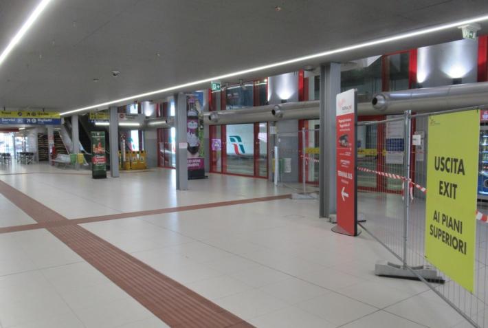 Sono iniziati i lavori di asfaltatura dei viali Falcone e Borsellino e di conseguenza gli ingressi pedonali della stazione al piano più basso (il meno 2) sono stati chiusi. Gli autobus non transitano sotto l’edificio della stazione e chi deve andare a prendere il treno, provenendo dalle strade situate dietro alla stazione, deve seguire le frecce sui cartelli gialli e utilizzare il sottopassaggio secondario, quello che anni fa era parte della «temporary station». L’accesso al sottopassaggio si trova nel piazzale dove fermano i bus extraurbani.