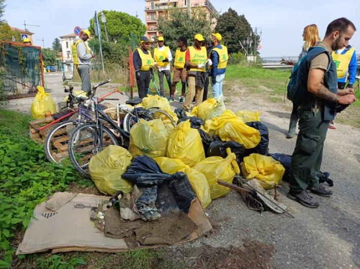 «La soddisfazione di oggi è molteplice – prosegue Bruno Marchio – innanzitutto la grande partecipazione, veramente mista di ogni età, dalle mamme coi bambini agli studenti di scuole superiori e universitari, ai nonni e nonne. E di diversa provenienza: dai parmigiani del sasso ai migranti. Voglio ringraziare in particolare le associazioni che hanno collaborato con grande entusiasmo a Puliamo il Mondo: i Monnezzari, il Ciac, e anche le scout del Cngei e le attiviste di Panta Rei che hanno dato quel tocco artistico, recuperando un grande telo e usandolo per un’opera di pittura improvvisata che ha abbellito l’azione di pulizia. Non dimentichiamo infine l’importanza di aver rimosso dall’ambiente dei rifiuti inquinanti che, con la prossima prevedibile piena del fiume, sarebbero giunti fino al mare Adriatico».