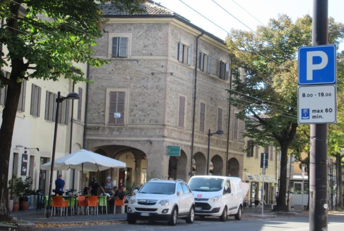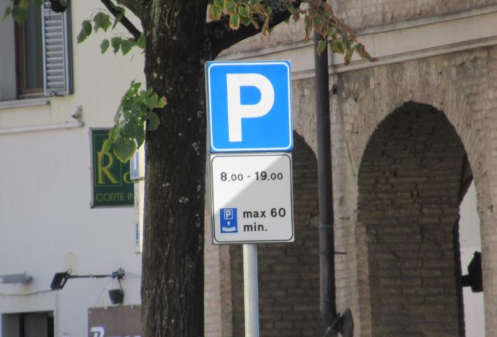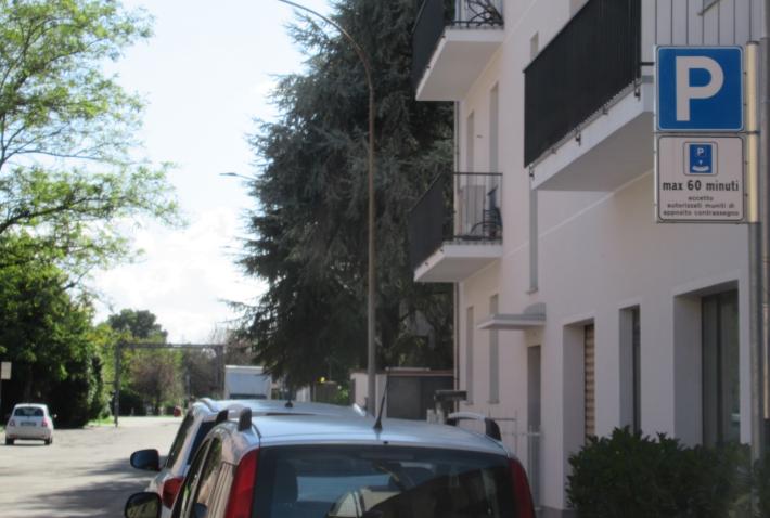 Va notato – con un po’ di stupore – che, in base alla segnaletica, le auto parcheggiate sulla via Emilia davanti alla Rocca devono esporre il disco orario anche nei giorni festivi (dalle 8 alle 19, come nei giorni feriali). E in via Newton i segnali prescrivono il disco orario in tutte le 24 ore di tutti i giorni.
