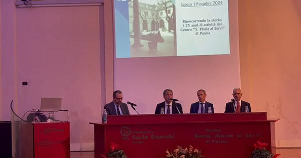 Una sala piena di medici, operatori sanitari, pazienti ha accolto i testimoni e i relatori che racconteranno i 75 anni di attività del centro “S.Maria dei servi” di Parma. Per “Ripercorrere la storia” della struttura intervengono don Vincenzo Barbante e Francesco Converti, presidente e direttore generale della Fondazione Don Gnocchi; Fabio Carlotti, direttore dell’Area Centro della Fondazione Don Gnocchi; Giuseppe Schirripa, direttore sanitario della struttura di Parma; Davide Lazzeroni, cardiologo, referente dell'area ricerca del Centro di Parma; gli ex allievi del Centro, Giuseppe Dellorusso e Claudio Rovacchi, ex dipendenti del Centro, alpini e amici della Fondazione, oltre a Claudio Rinaldi, direttore della Gazzetta di Parma, in veste di moderatore.
