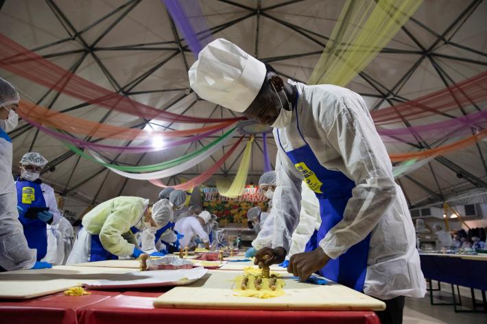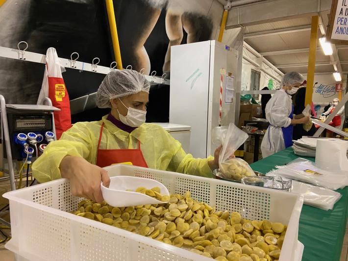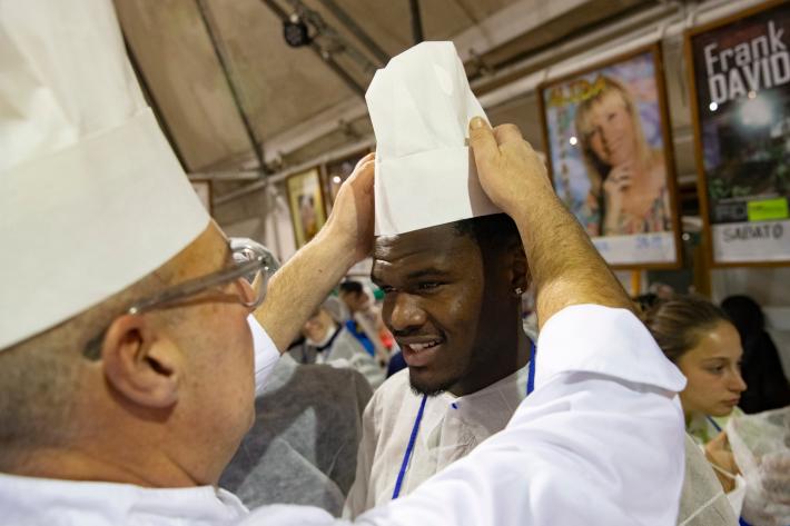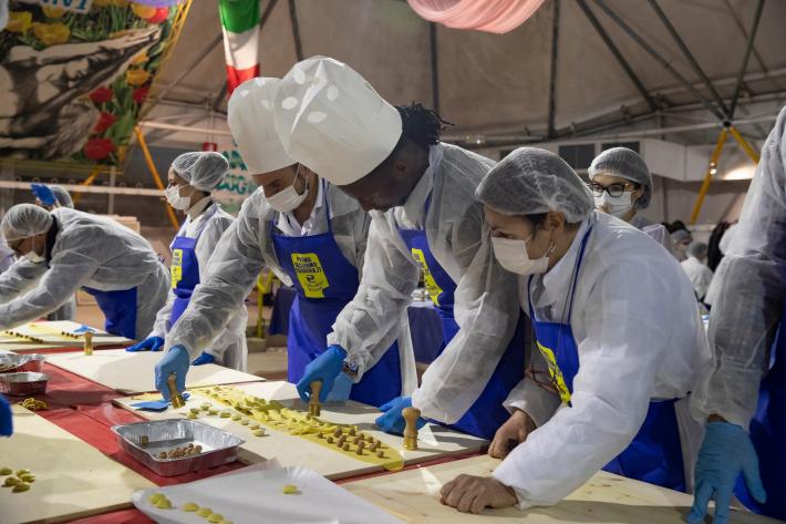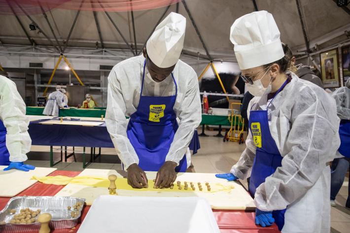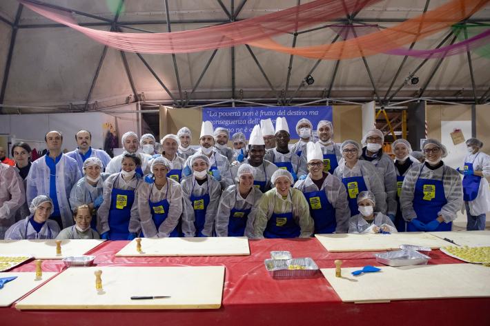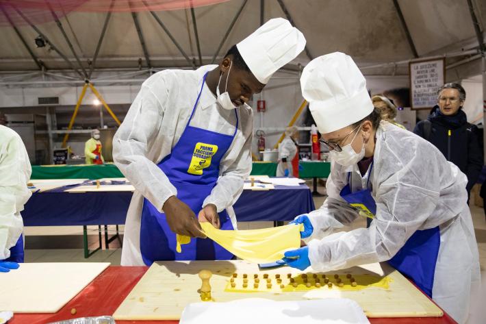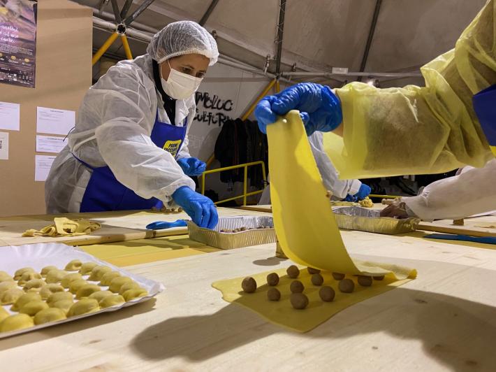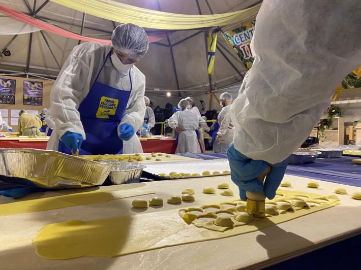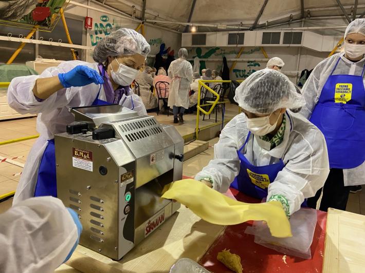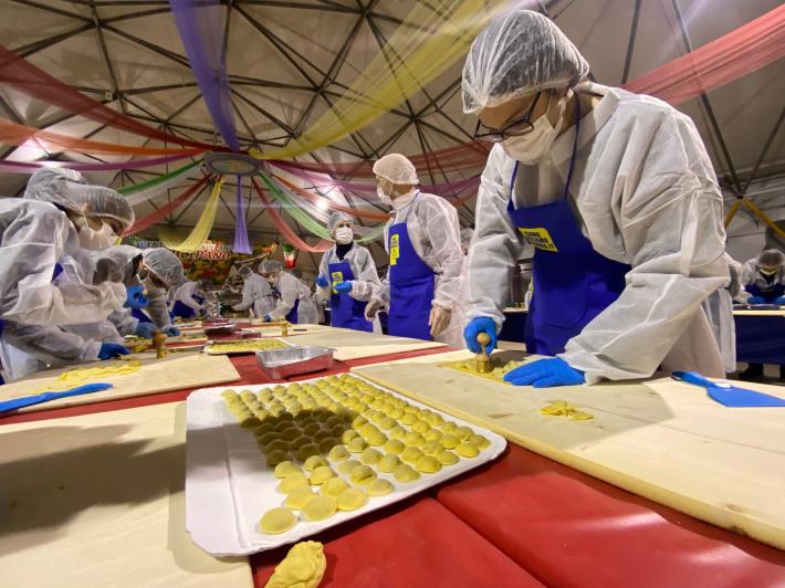 Parata di campioni? Per un pomeriggio è meglio definirla parata di chef al al centro sociale anziani Il Tulipano. Già perchè a preparare gli anolini solidali, oggi, con tanto di cappello bianco da chef sono stati non solo l'immensa Giulia Ghiretti, ma anche una coppia di giocatori crociati del Parma calcio, Bonny e Coulibaly. Con loro alcuni funzionari dell'Efsa. Sorrisi, sport, cucina, parmigianità e... tanta solidarietà.