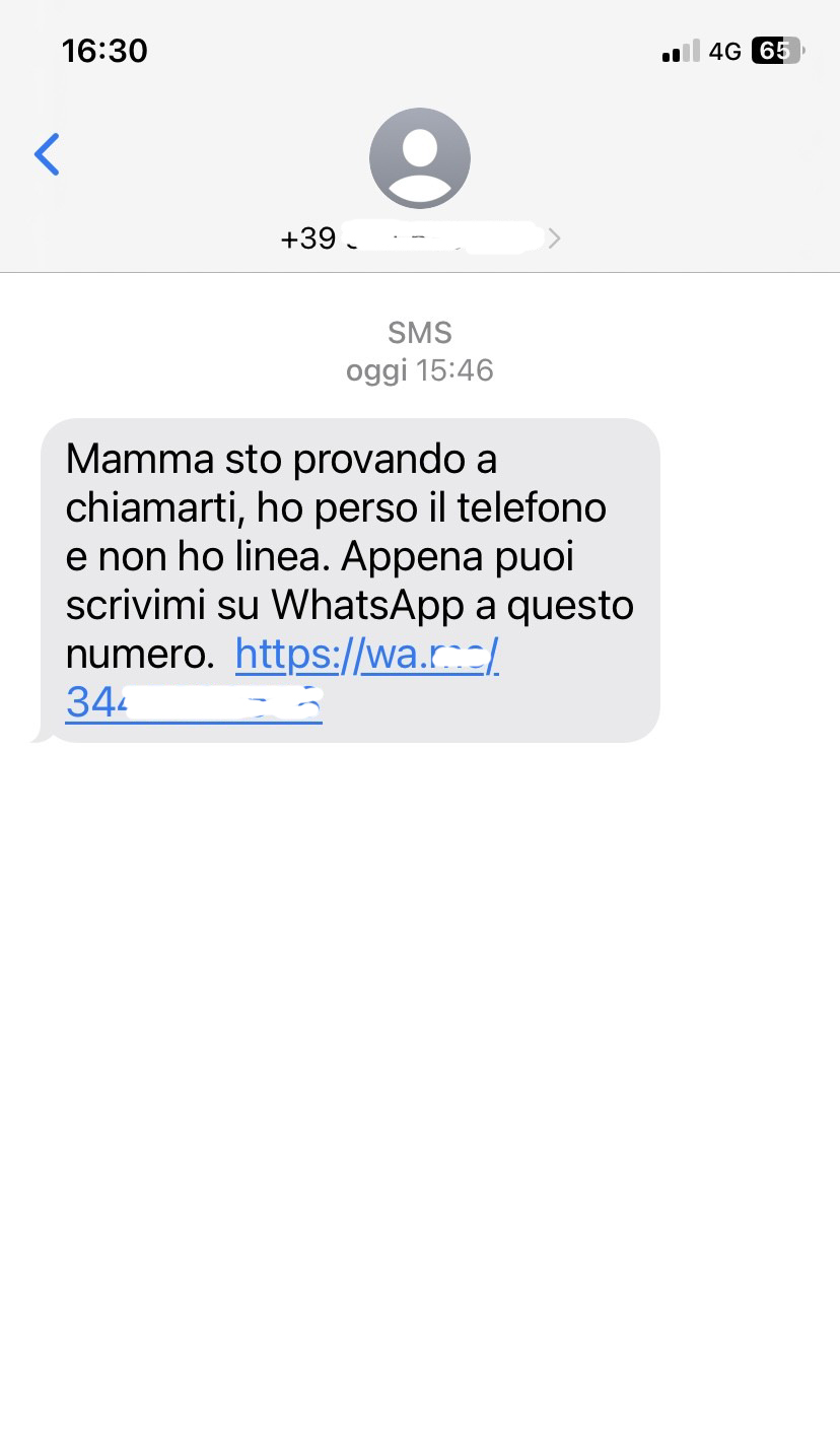 "Mamma, ho perso il telefono. Scrivimi sul nuovo numero". Non importa che chi riceve il messaggio sia veramente una mamma, un papà o che magari proprio non abbia figli. Messaggi truffa come quello che pubblichiamo arrivano inesorabili, praticamente ogni giorno, a tantissime persone. L'importante è tenere presente che si tratta di messaggi fasulli, con conseguenze spiacevoli per chi dovesse rispondere o cliccare link "sospetti" (ad esempio, si può finire per fornire dati personali o inviare denaro ai malviventi).