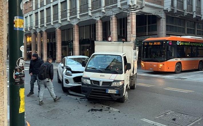 Paura in via Mazzini questa mattina intorno alle 7: come documentano le foto di Alberto, studente, si sono socontratti un’autovettura e un camion della spazzatura all'altezza dell'incrocio con strada Garibaldi. Per fortuna solo danni ai mezzi, ma nessun ferito.