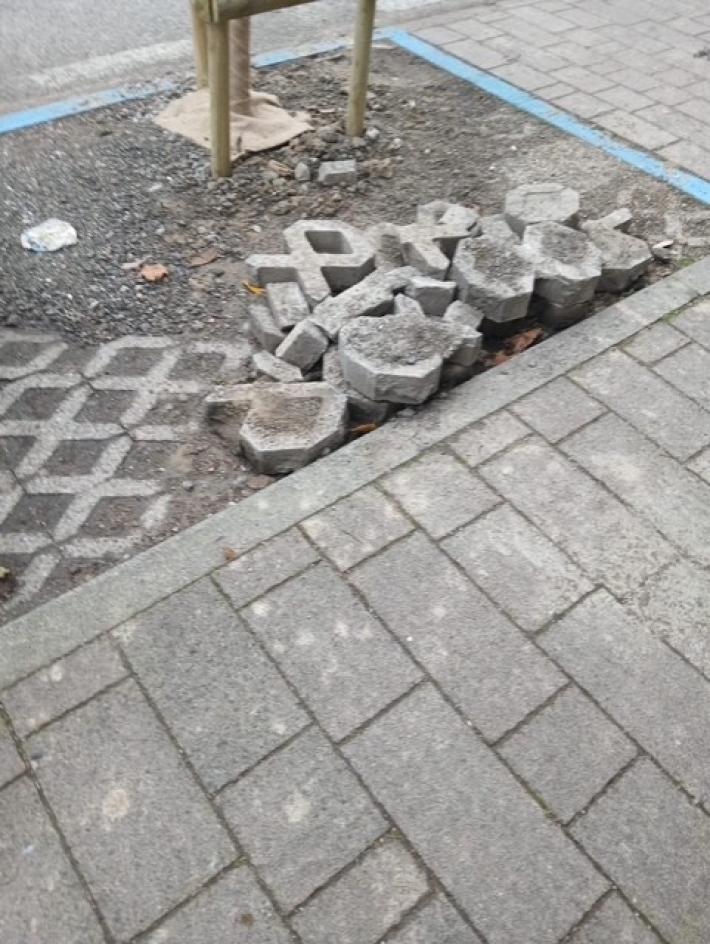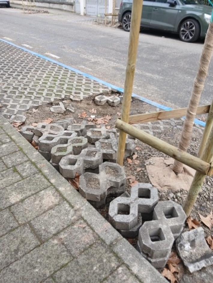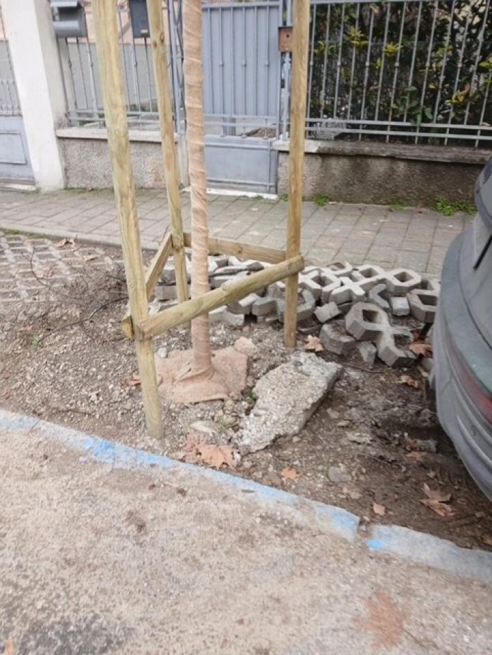 "Segnalo che la strada Domenico Maria Villa si trova da 20 giorni, dopo la piantumazione di nuovi alberi, con il mancato ripristino della pavimentazione nella zona adiacente al marciapiede: come si può vedere dalle foto che allego gli autobloccanti non sono stati riposizionati ma si trovano accatastati. Si tratta di un contesto “pericoloso” per i pedoni (zona frequentata dai bambini della scuola dell’infanzia presente nella via) e la “sicurezza” per le macchine per l’uso “improprio” che qualcuno potrebbe farne. La situazione è già stata segnalata da chi scrive due volte dal Comune".