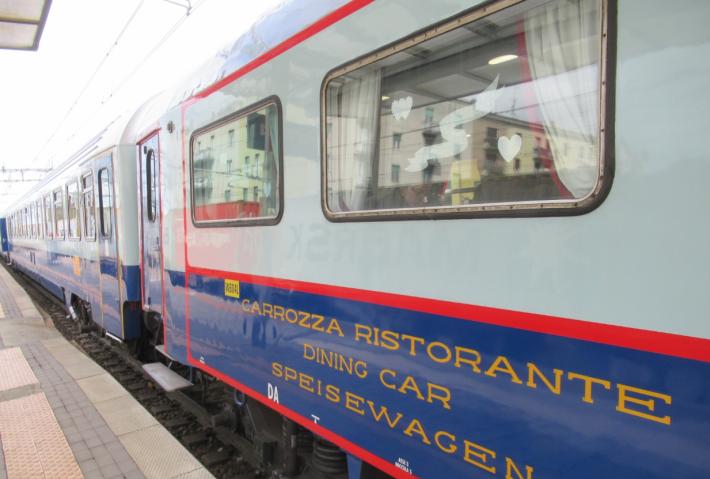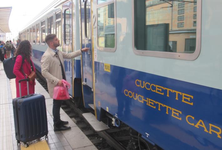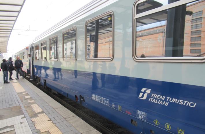Un treno azzurro a Parma: è il «Sicilia Express» delle vacanze pasquali