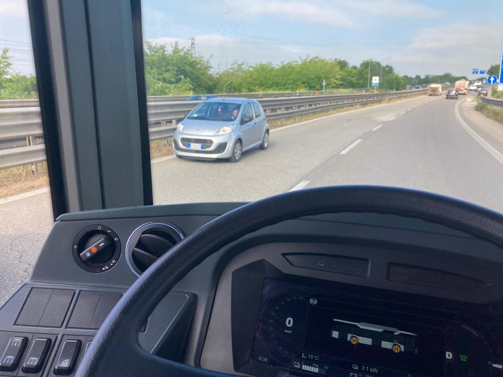 Attimi (lunghissimi) di paura in tangenziale Nord intorno alle 9 e un quarto: un'utilitaria, guidata da una donna anziana, viaggiava contromano nel tratto in prossimità della svolta per imboccare la tangenziale Sud. Automobilisti atterriti, l'autista di un bus ha scattato due foto di quella corsa folle. Qualcuno poi è riuscito -tramite rallentamenti e sfanalate - a bloccare l'auto che si è rimessa nella giusta direzione e infine ha raggiunto l'uscita.