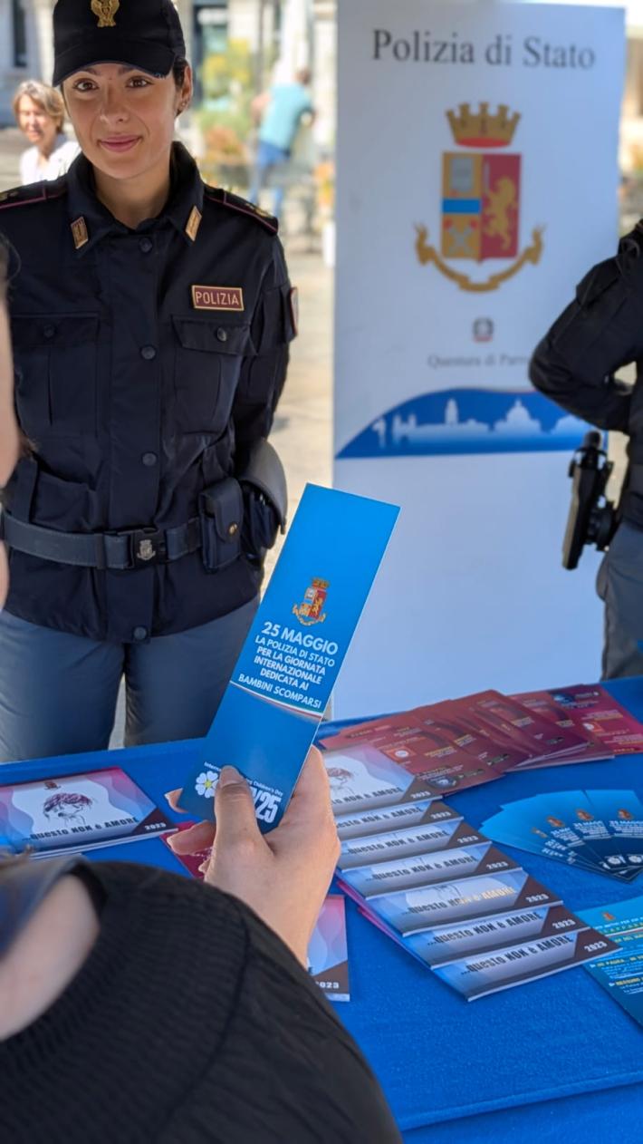 Nell’ambito delle iniziative adottate per questa ricorrenza dal Dipartimento della Pubblica Sicurezza, anche la Questura di Parma ha allestito in Piazza Garibaldi oggi  un gazebo informativo al fine di sensibilizzare la cittadinanza sul fenomeno dei minori scomparsi, distribuendo pieghevoli informativi e segnalibri realizzati dal Servizio Centrale Anticrimine in collaborazione con il Centro Operativo per la Sicurezza Cibernetica della Polizia Postale.