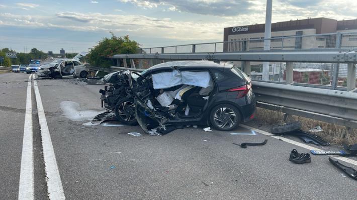 Spaventoso incidente questa mattina intorno alla 5 in viale Europa, sul cavalcavia dell'autostrada: due auto si sono scontrate. Due ragazze sono rimaste ferite in maniera grave e trasportate al Maggiore. Pare che siano rimaste coinvolte altre tre persone.