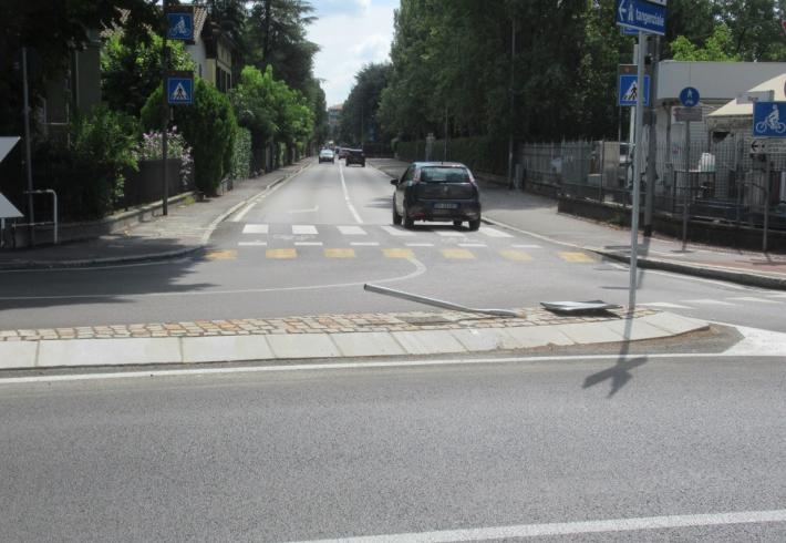 Nella rotatoria di via Mantova in funzione da poche settimane all’incrocio con via Parigi è stato abbattuto un cartello della segnaletica stradale, proprio di fronte a via Parigi. Si tratta di uno dei quattro pannelli che delineano una curva creata nel nuovo assetto dell’incrocio, rivolti al traffico che proviene da via Emilia Est. La rotatoria è stata realizzata per rendere più sicuro il transito dei veicoli in via Mantova e per permettere la svolta a sinistra – prima vietata – ai veicoli provenienti da via Parigi. Il precedente assetto dell’incrocio è stato profondamente modificato, con nuovi itinerari che possono non essere compresi all’istante da tutti i conducenti. Il pannello abbattuto, probabilmente, ne è la dimostrazione. In precedenza, di fronte a via Parigi, via Mantova era praticamente un rettilineo e la nuova rotatoria costituisce una grande novità, che può rappresentare una «sorpresa» per i conducenti che non sono al corrente dell’innovazione. Va evidenziato che la rotatoria, presegnalata dai cartelli regolamentari che indicano la circolazione rotatoria, non è preannunciata anche dai cartelli «viabilità modificata» che, di solito, vengono installati per avvisare che sono state apportate modifiche alla strada che si sta percorrendo.