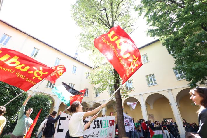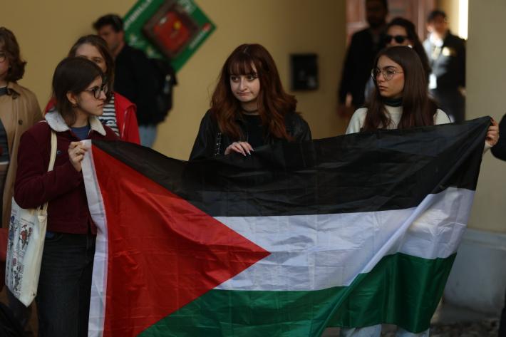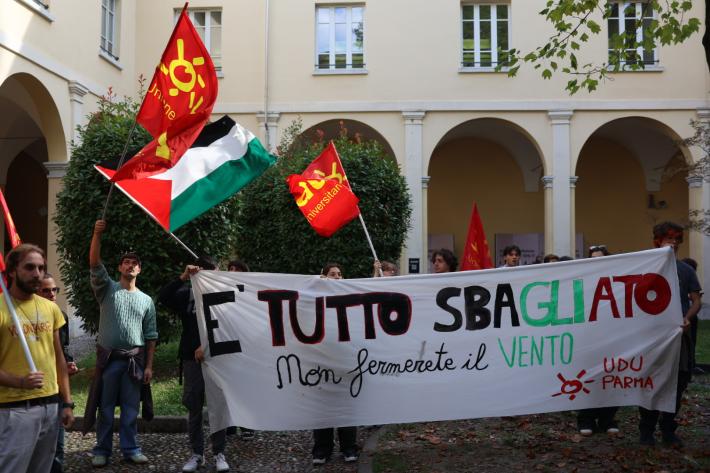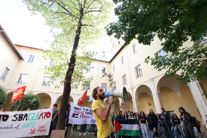 Al via il presidio nel chiostro di Lettere a sostegno della Global Sumud Flotilla promosso dagli studenti dell’Udu. Il presidio durerà 24 ore. (foto di Luca Bertozzi) [articlepreview id="896434" link="https://www.gazzettadiparma.it/scuola/2025/10/02/news/presidio-degli-universitari-a-lettere-in-supporto-alla-global-sumud-flotilla-896434/"]