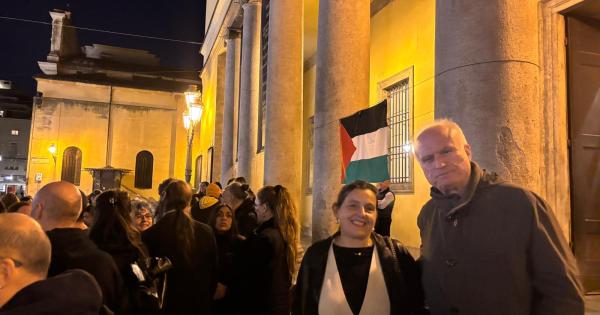 E' stato allestito un presidio con la bandiera di Gaza davanti al Teatro Regio, dove è saltata la prima di Falstaff nel giorno dello sciopero generale a sostegno della Flotilla.