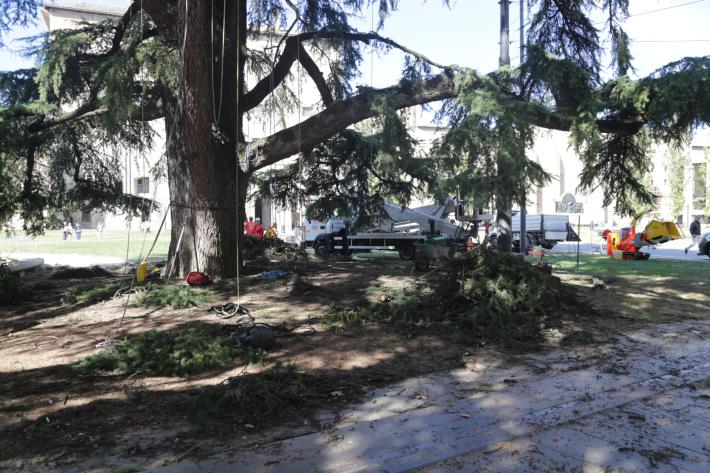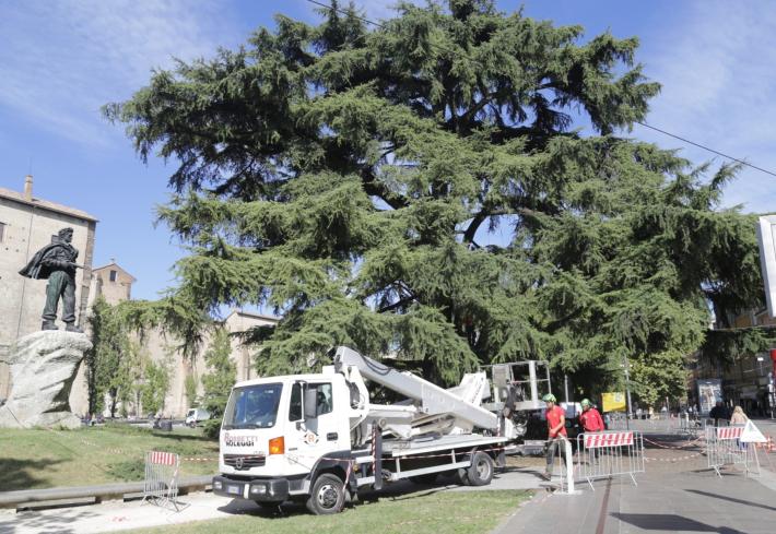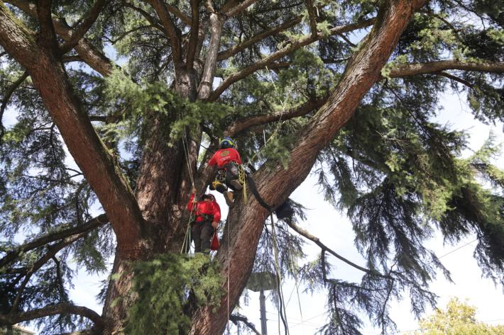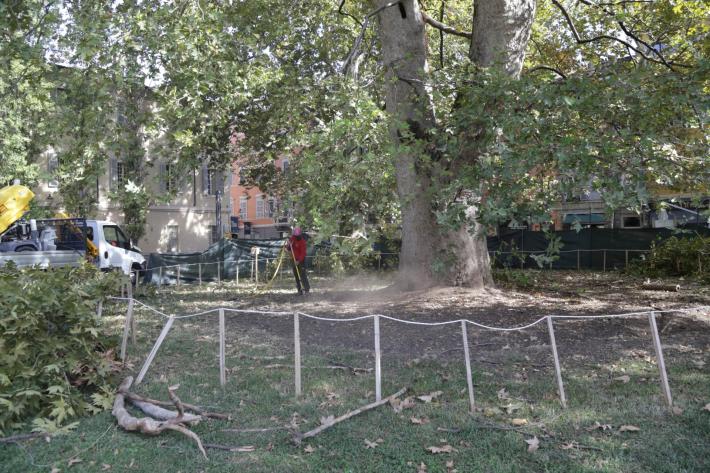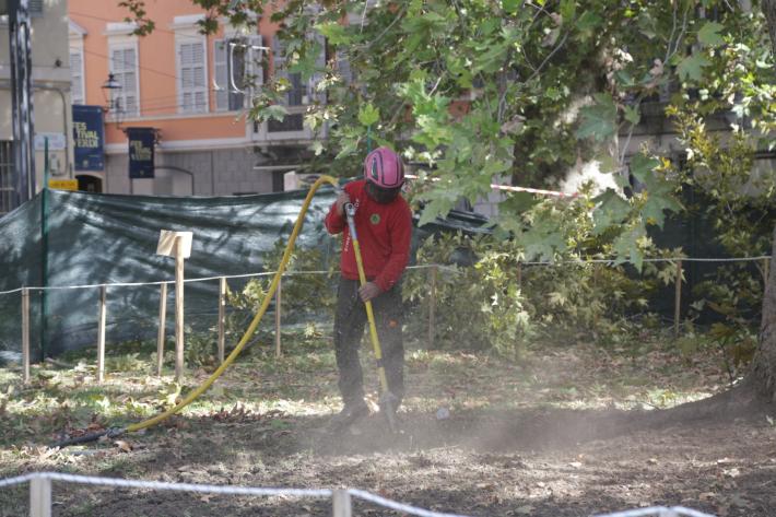Sono in corso in piazzale della Pace interventi di conservazione e cura sugli alberi monumentali: il cedro e i platani di Maria Luigia. Gli esemplari sono iscritti all’elenco degli alberi monumentali d’Italia (AMI), che comprende alberi ad alto fusto di particolare valore per maestosità, longevità, rarità botanica o rilevanza storica e culturale. Gli interventi rientrano nell’attività periodica di conservazione e comprendono la rimonda delle parti secche e specifiche azioni di cura del sistema radicale. In particolare, viene utilizzata la pratica dell’air spade, uno strumento ad aria compressa che permette di spostare il terreno circostante alle radici senza danneggiarle; questo metodo favorisce la corretta aerazione del substrato, migliora l’assorbimento dei nutrienti e stimola la rigenerazione delle radici, contribuendo così a incrementare la salute complessiva degli alberi. A completamento delle operazioni, è stata installata una barriera temporanea per prevenire il costipamento del terreno dovuto al calpestio, in attesa della realizzazione di una delimitazione definitiva dell’area.