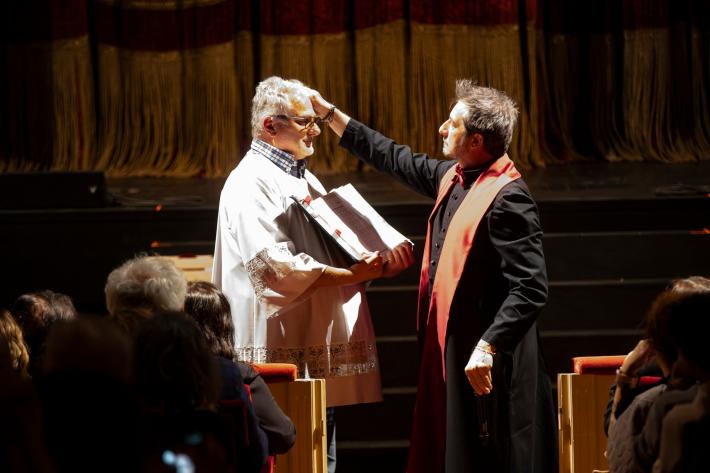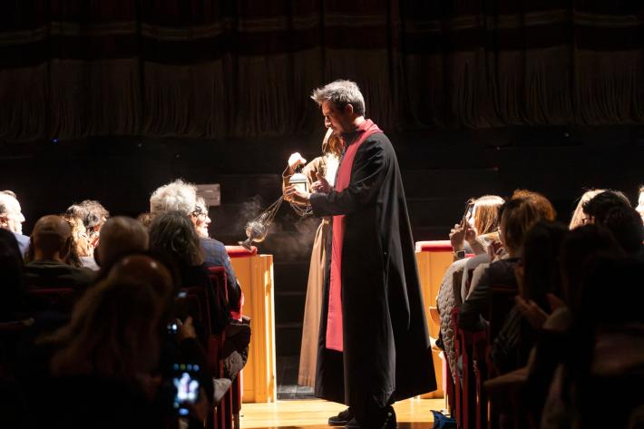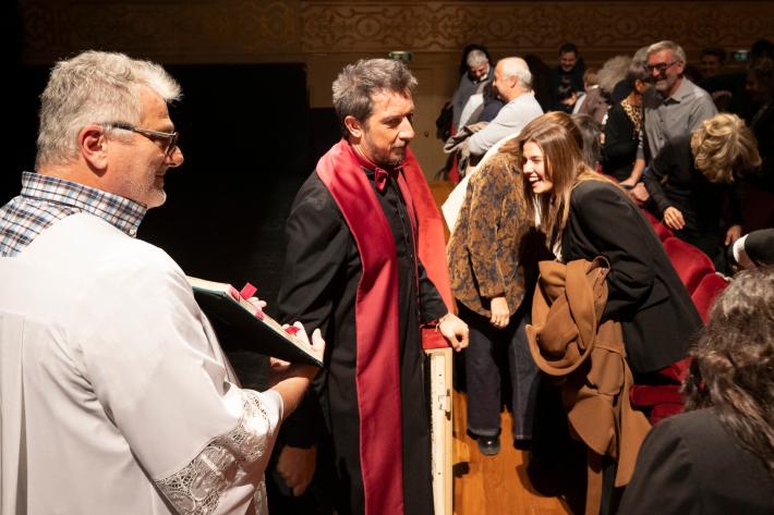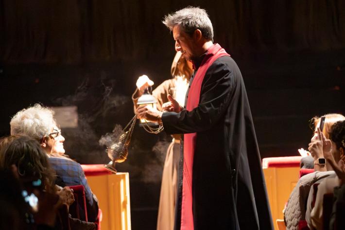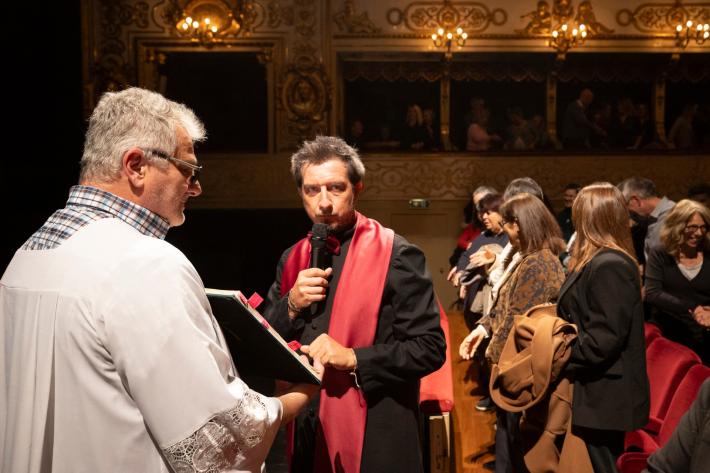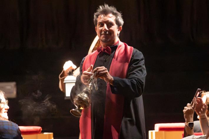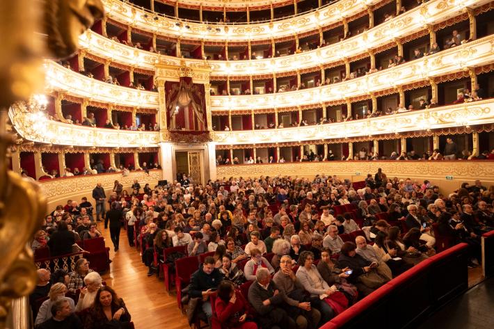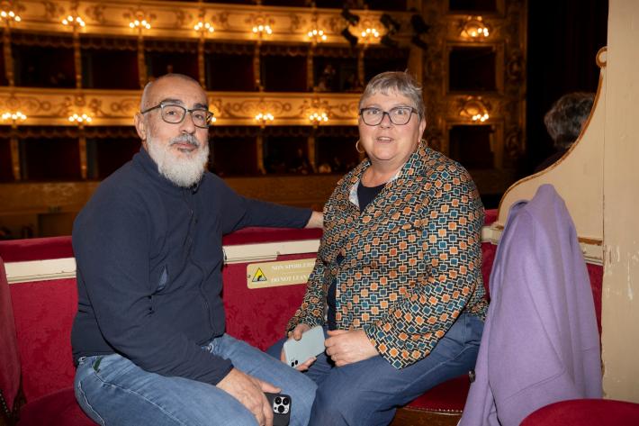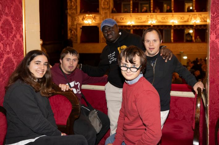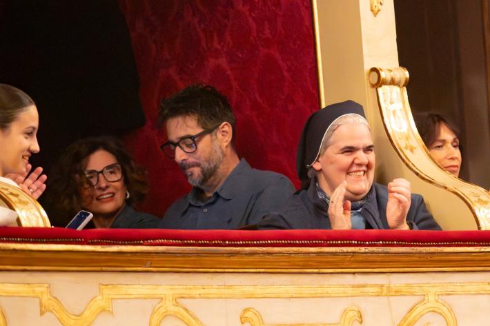 Questa sera al Teatro Regio, per la ressegna «Tutti a Teatro», è andato in scena lo spettacolo «Din Don Down-Alla ricerca di (D)io». Si tratta della nuova «contagiosa» creazione di Paolo Ruffini e degli attori della Compagnia Mayor Von Frinzius. Un happening comico e spirituale, un moto perpetuo di disobbedienza e tenerezza che già aveva consacrato il successo del precedente «Up&Down», vero e proprio fenomeno per oltre sei anni. Ruffini, sulla scena, è il complice e il bersaglio delle sfrenate incursioni degli attori con disabilità della Compagnia.