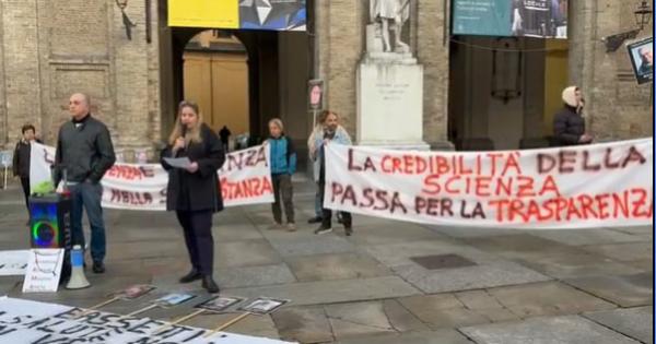 “Noi crediamo nella scienza come strumento e non come religione: chiediamo trasparenza”. Così è iniziato il presidio in piazza Garibaldi guidato dal gruppo Gruppo Unito Anno Uno sindacato d’Azione, sceso in piazza contro l’infettivologo Matteo Bassetti, che oggi tiene una lectio magistralis all’Università di Parma. “Bassetti la salute non è in vendita” e “basta bugie” sono solo alcuni degli slogan scritti a caratteri cubitali sui cartelloni.
