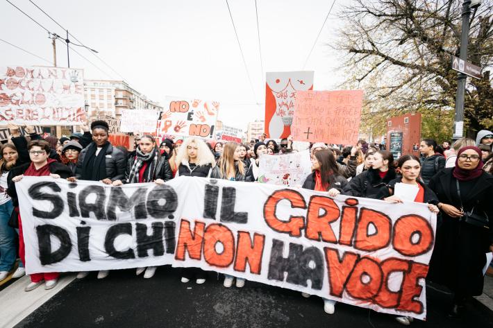 Tanti giovani sono scesi in piazza, oggi, in occasione della Giornata internazionale per l'eliminazione della violenza contro le donne. Corteo “Siamo il grido di chi non ha voce” promosso dalla Casa delle Donne di Parma e da altre associazioni e gruppi partito da piazzale Santa Croce e, dopo via D'Azeglio e via Mazzini è arrivato in piazza Garibaldi dove, tra gli altri, sono intervenuti il sindaco Michele Guerra e l'assessora con delega a Diritti e pari opportunità Caterina Bonetti.