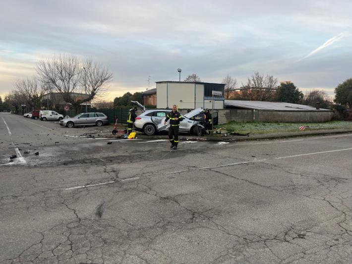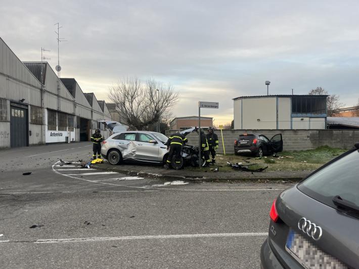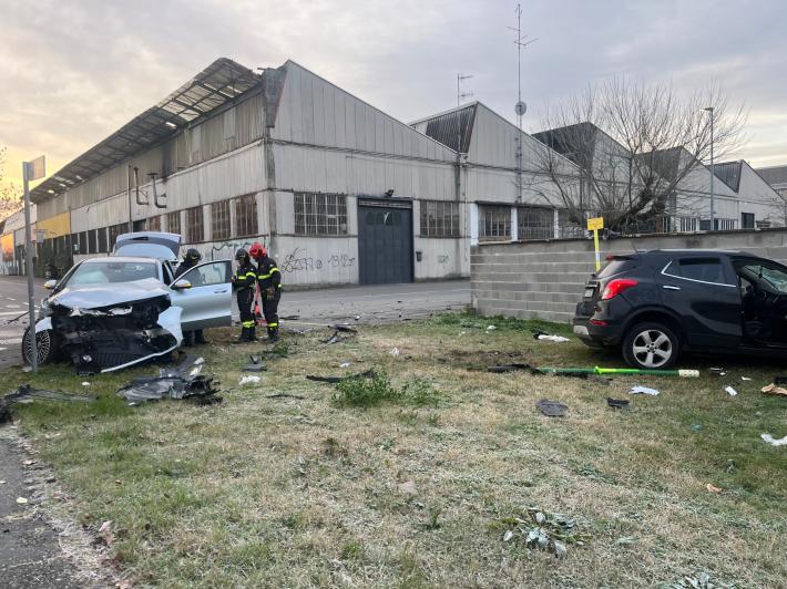 Frontale spaventoso in via Coppi: due feriti, auto distrutte - Foto e video