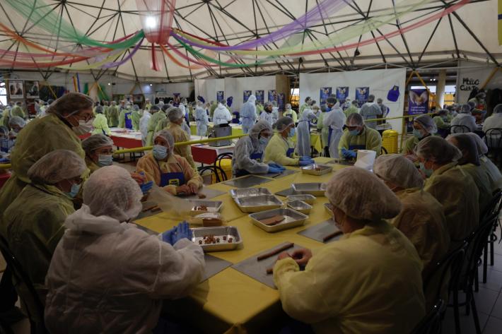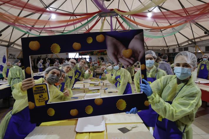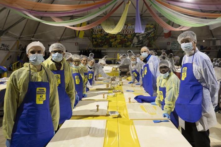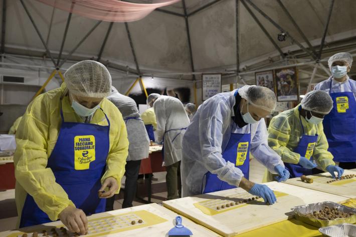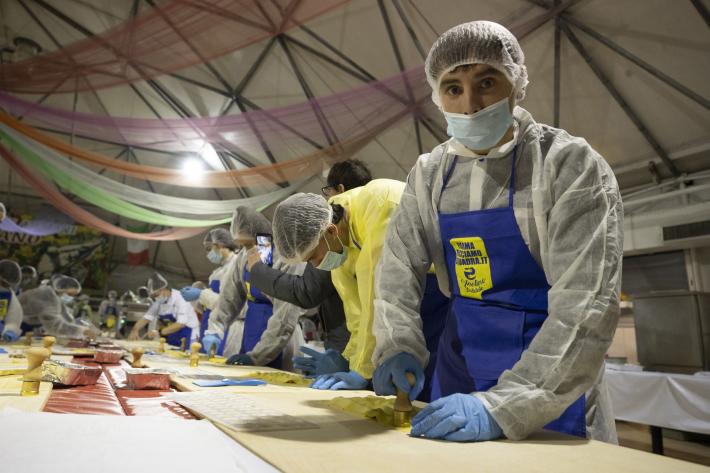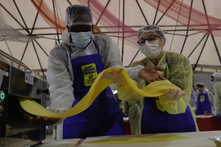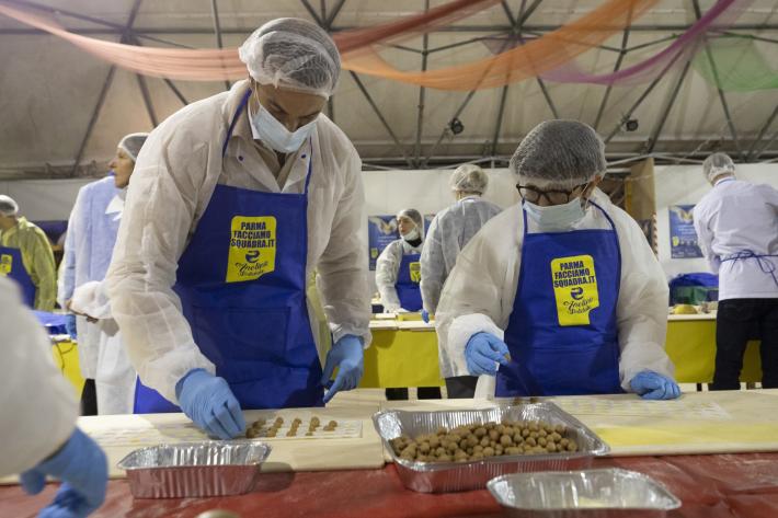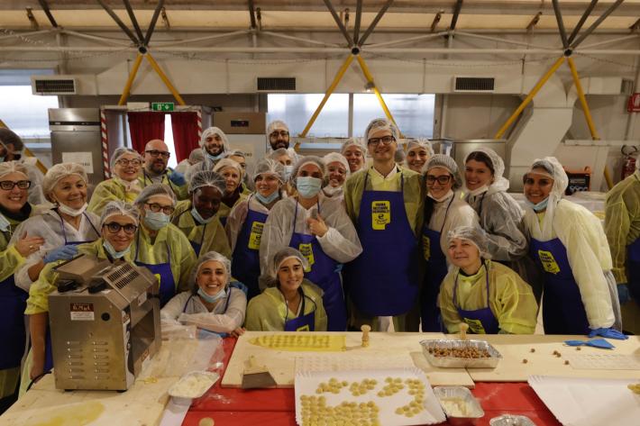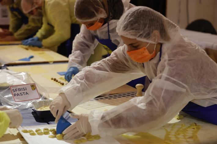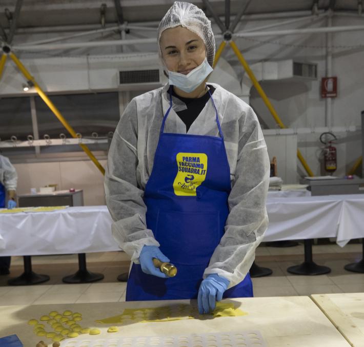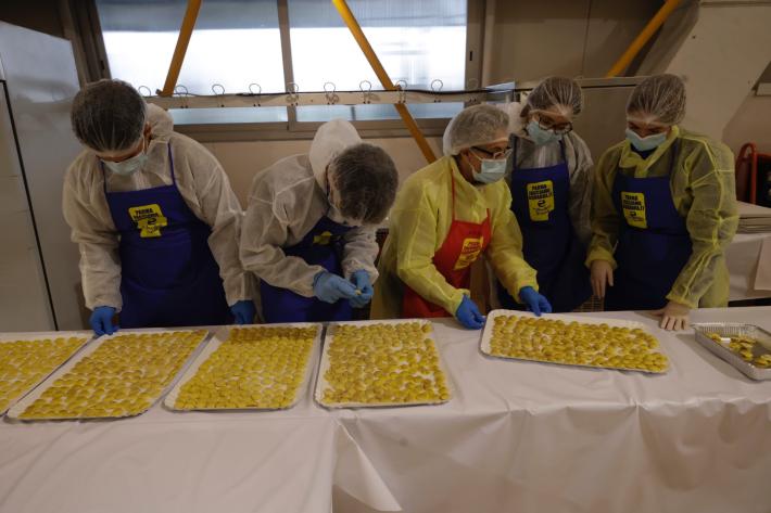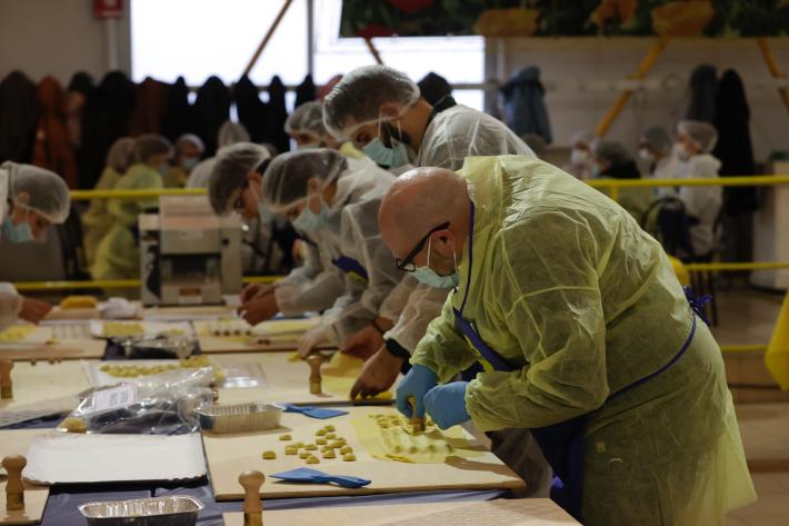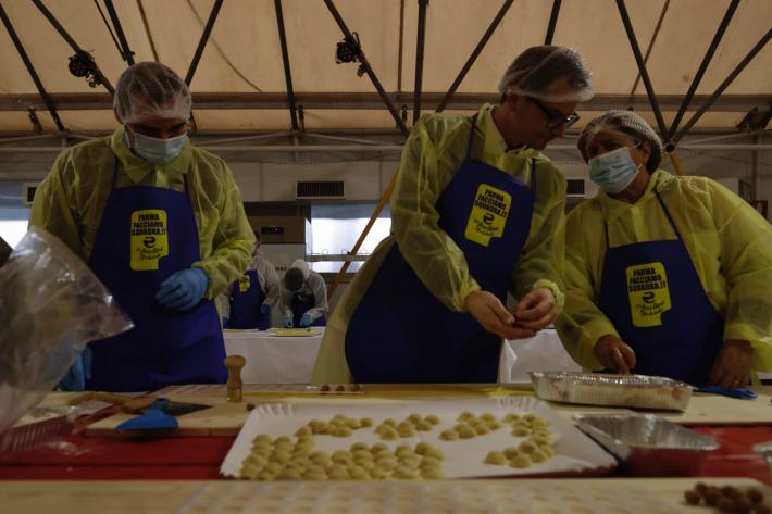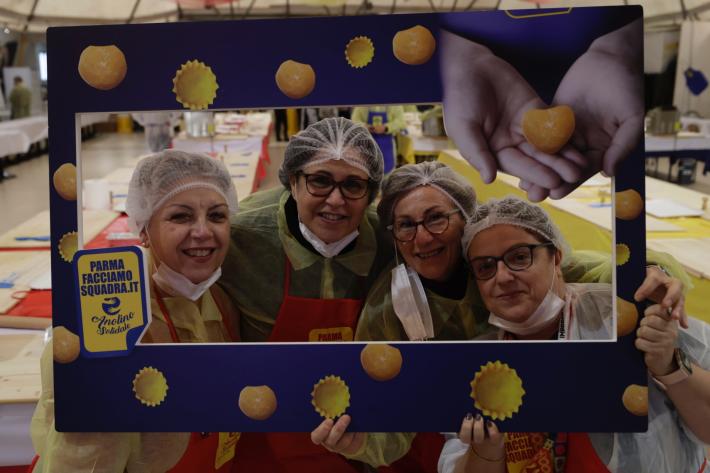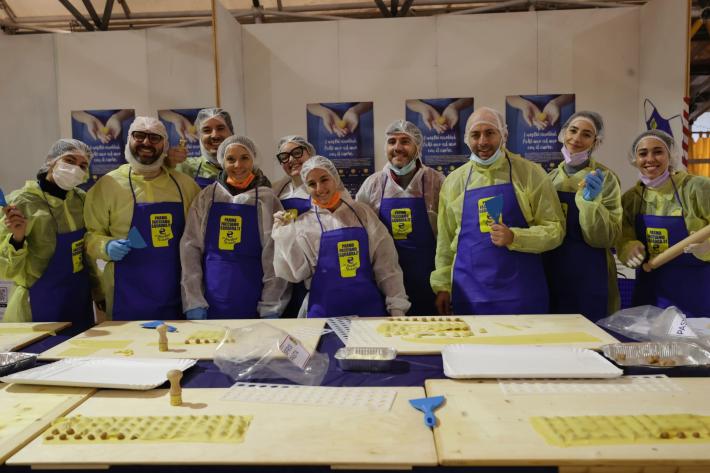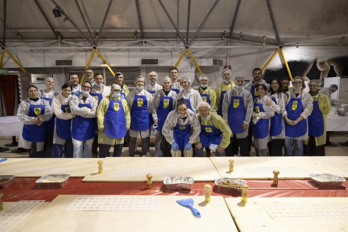 Gli anolini solidali si tingono di gialloblù: Bernabè, Circati e la Cini alle prese con pasta, ripieno e stampo - Foto: star crociate, municipali, dipendenti di Chiesi e Glaxo "al lavoro"
