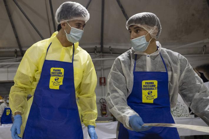 Continua l'iniziativa "anolini solidali". Oggi in tanti impegnati al Circolo Tulipano in via Bonomi. Primi "cuochi" i dipendenti del Comune e quelli di Chiesi e Glaxo. A seguire tre stelle gialloblù crociate, Bernabè, Circati e la Cini. Con loro anche i dirigenti del Parma calcio, tra cui Cracolici, Perrone e Pettinà.