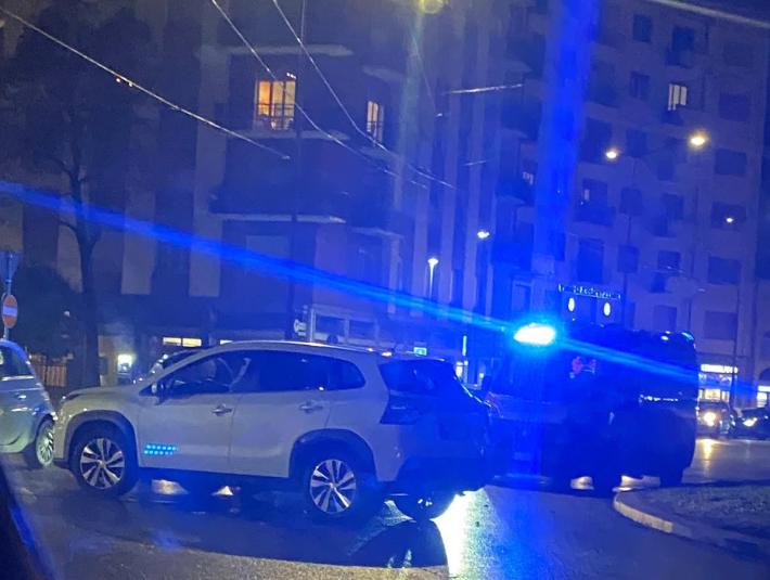 Incidente in piazzale Santa Croce nel tardo pomeriggio. Le foto di un lettore mostrano un'auto in posizione opposta alla direzione di marcia della rotatoria.