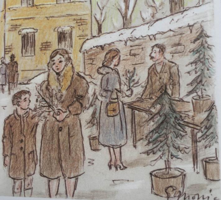 A ALBERO DI NATALE: un tempo, nei paesini del nostro appennino, era diffusa l’usanza di tagliare una piantina di ginepro ed agghindarla molto spartanamente con lustrini, carta stagnola, castagne secche e qualche caramella. In città, invece, i piccoli pini che, una volta portati a casa emanavano un magico profumo di resina, venivano venduti da ambulanti che collocavano i loro banchi sullo Stradone ( angolo Strada Farini), davanti al Teatro Regio ed in Piazzale Santa Croce dove Francone Dodi, l’indimenticabile gigante buono «de dlà da l’acua», esercitava questo lavoro stagionale.