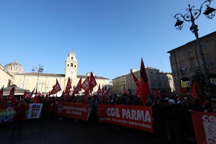 Parma come tutta Italia ha aderito allo Sciopero generale indetto da Cgil. Tanti lavoratori e lavoratrici (ma anche pensionati e pensionate) si sono riuniti questa mattina in piazza Garibaldi per dire che la manovra di bilancio definita "ingiusta ,e che non dà risposte su salari, pensioni, fisco e che punta sul riarmo anziché sul rilancio industriale del paese", dichiarano dalla Cgil di Parma.