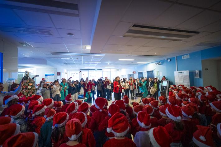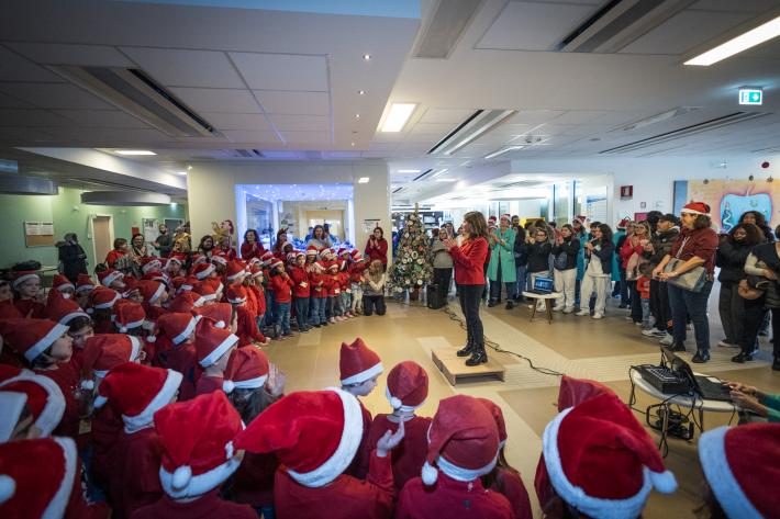Oggi all'Ospedale dei Bambini “Pietro Barilla” 100 piccoli coristi si sono esibiti nei canti di Natale: nella fotogallery i momenti di una bella iniziativa.