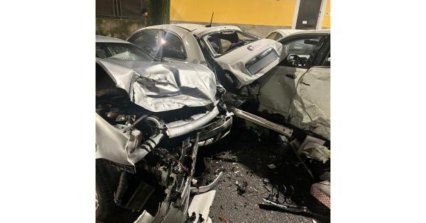 Schianto in viale Mentana contro le auto in sosta: un incidente pauroso si è verificato questa mattina poco prima delle 6, quando un'auto nella curva del viale, più o meno all'altezza con stradello San Girolamo, forse per l'elevata velocità, è andata a sbattere contro le auto in sosta. Almeno 5 i veicoli "centrati" e andati completamente distrutti.