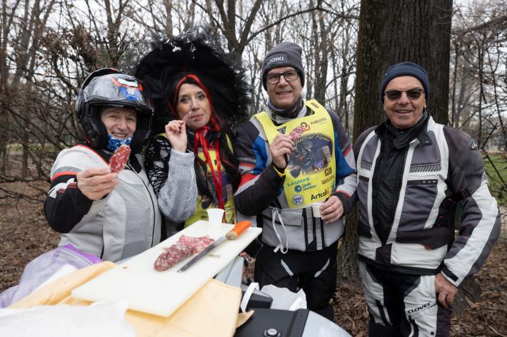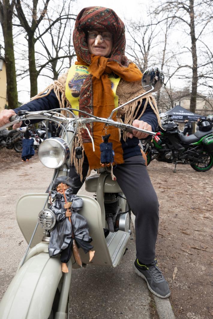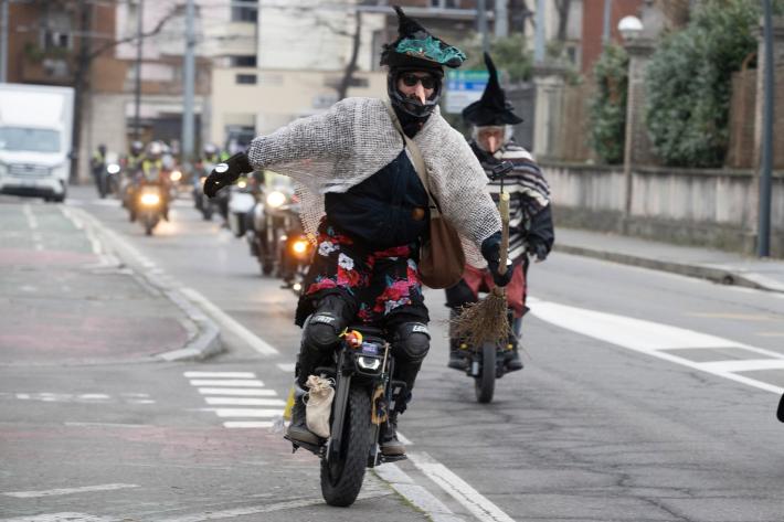 I partecipanti, a bordo delle loro motociclette e travestiti da <befane>, hanno portato giochi, dolci e sorrisi in giro per la città.