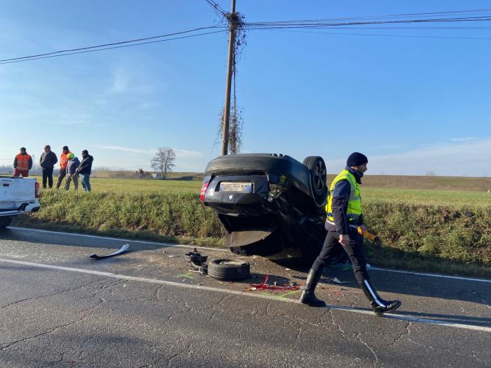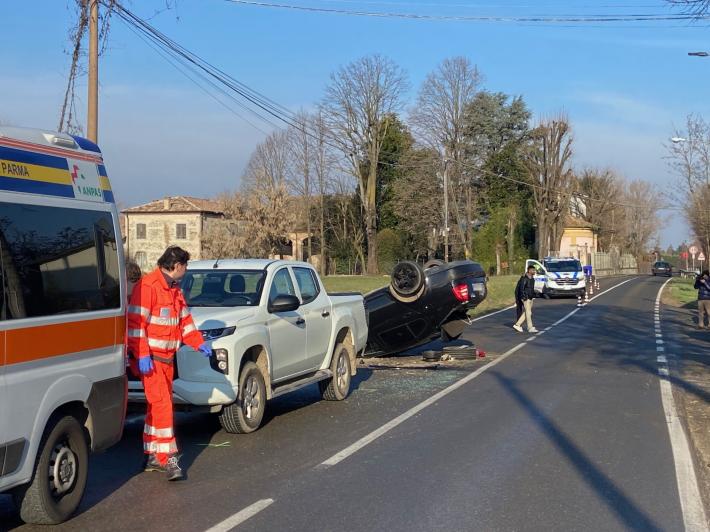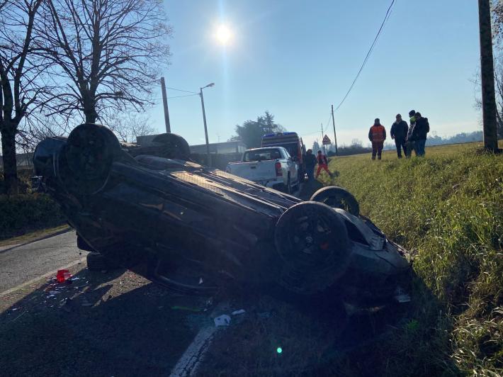 L'incidente è avvenuto intorno alle 9,40 in strada Argini (di fronte all' asilo Montessori Labor) all'incrocio con strada Greggia: un'auto - per cause ora al vaglio della polizia locale  - si è ribaltata andando a finire nel fosso.  L'auto è andata distrutta, il conducente incastrato nell'abitacolo accartocciato è stato estratto dai vigili del fuoco: sono intervenuti i mezzi del 118, ma il conducente ha rifiutato il trasporto al Maggiore.