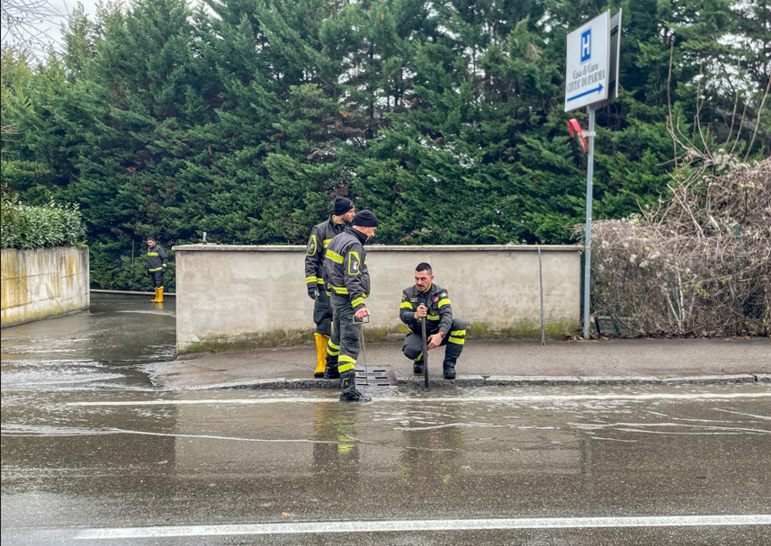 Via Traversetolo: si rompe un tubo, allagamento in strada. Intervengono i vigili del fuoco e i tecnici
