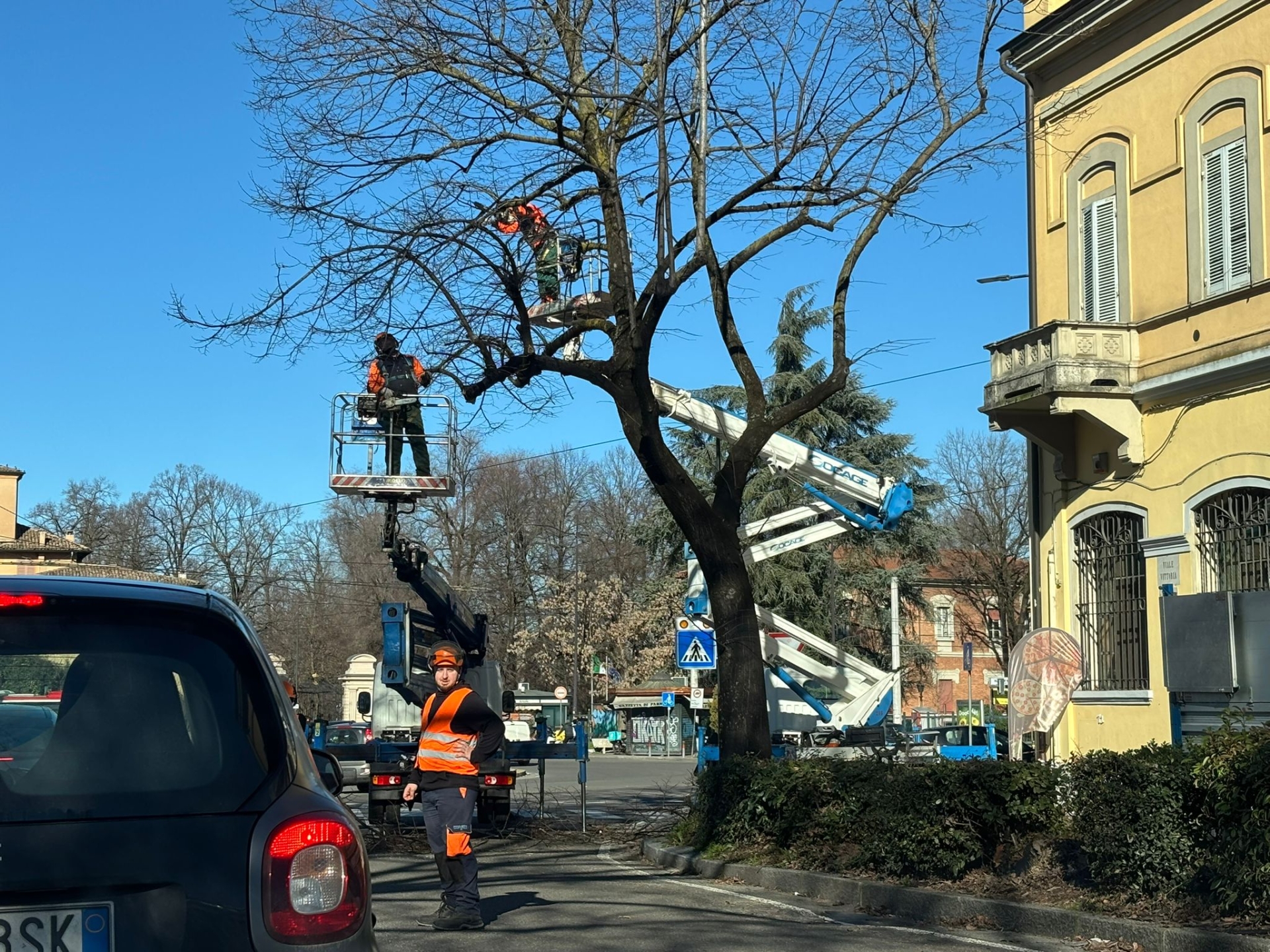 Traffico rallentato in viale Vittoria a causa di alcuni lavori di potatura. Lungo l’ultimo tratto, segnalato dagli appositi cartelli, si viaggia su una corsia.